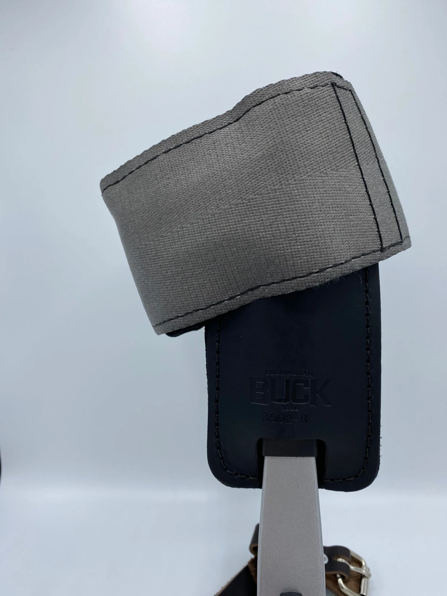 Buckingham 3502 cushion wrap pads fits all newer Buckingham climbing spurs. This model has a metal insert for extra comfort and is secured to climbers with a neoprene Velcro strap and Cordura nylon wrap cover.