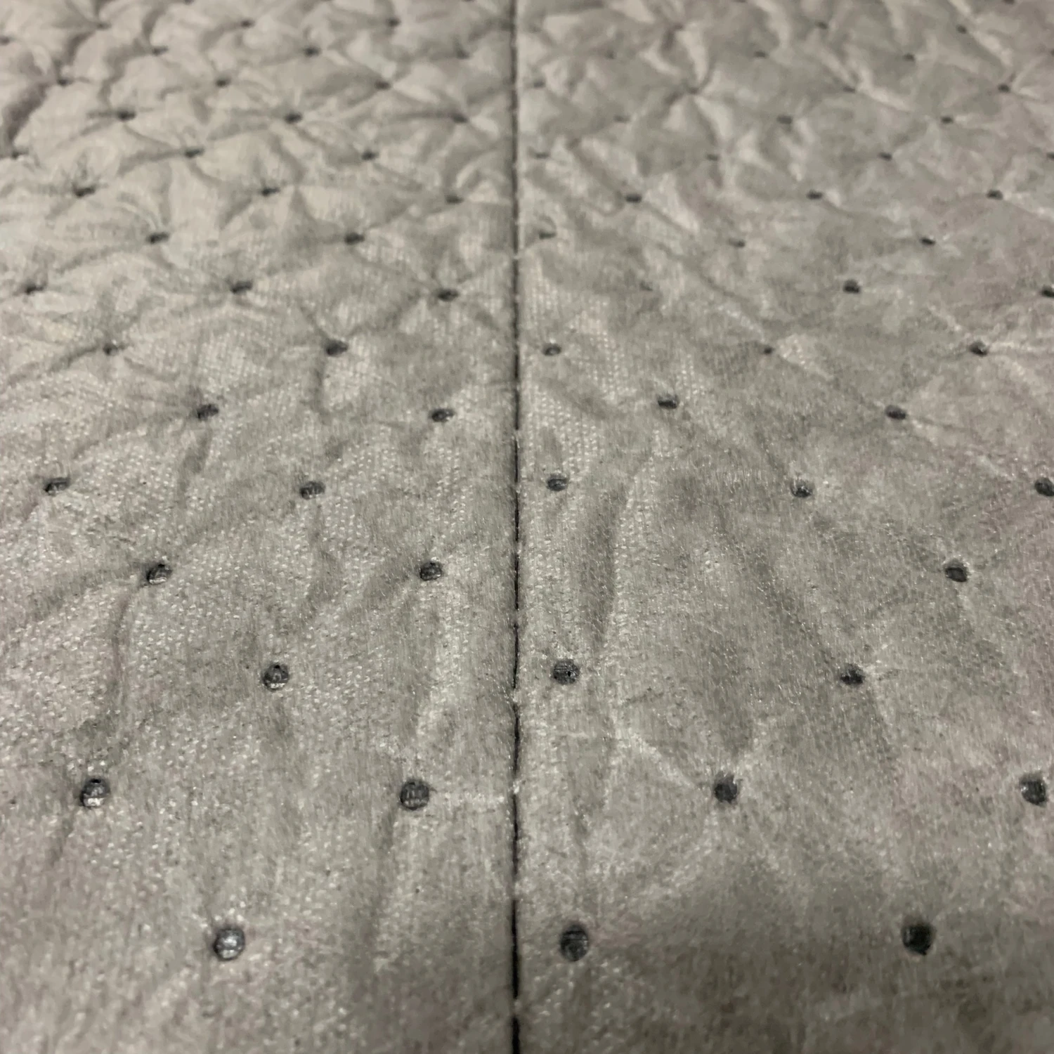 Tough and durable, offering the extreme softness and drape-ability needed, our Universal Laminated “Flex” sorbents are constructed by ultrasonically bonding outer layers of durable polypropylene spunbond to a high-loft meltblown center. Non-linting, our pads are perforated for easy and exact use.
