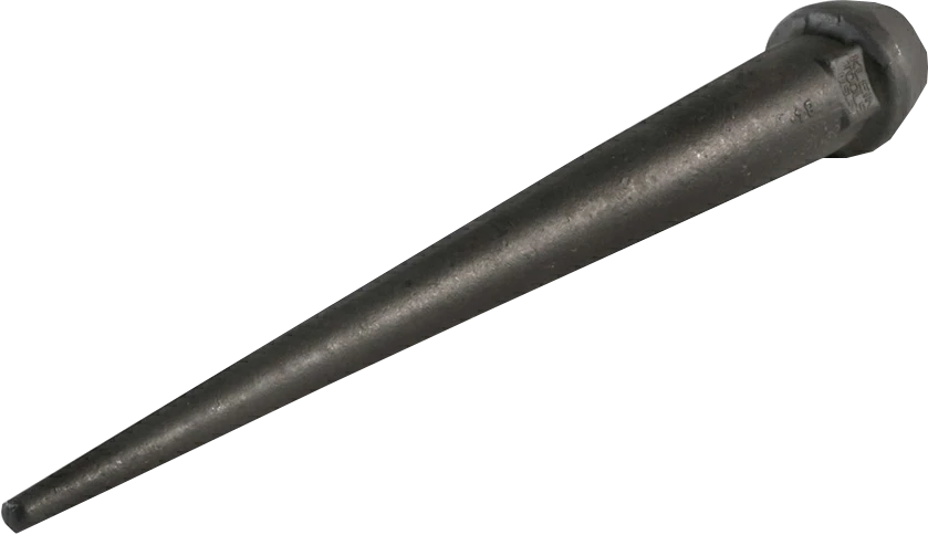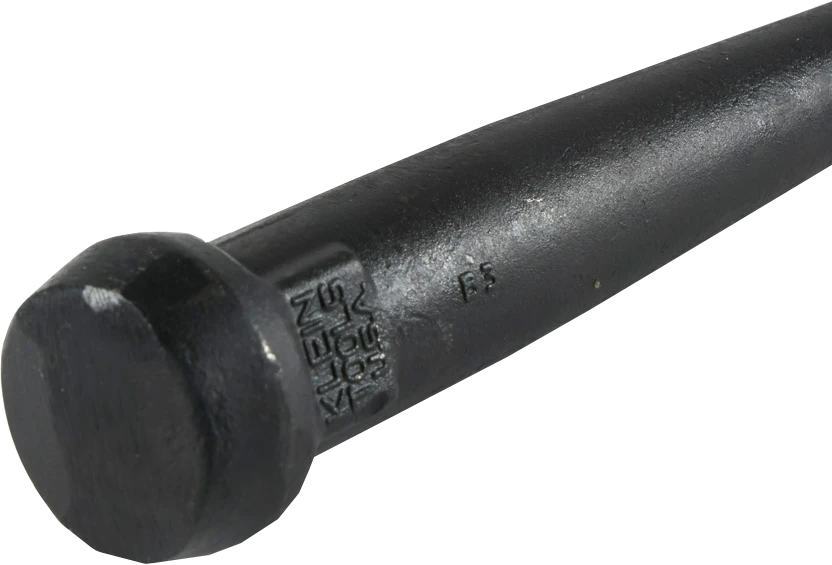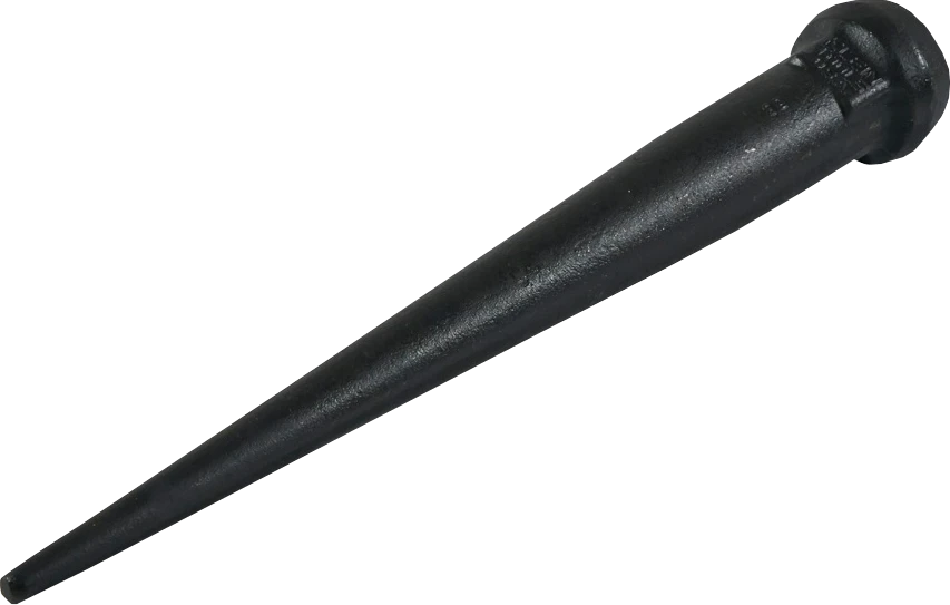 Below the head, squared-off shoulders have been forged to provide a surface for applying wrench to loosen wedged bull pins.