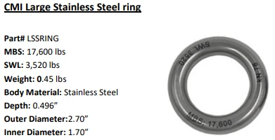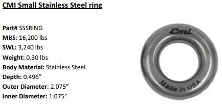 The CMI stainless steel ring is an excellent accessory that can be used with your anchor or haul system. This device is also great for friction savers and saddles.